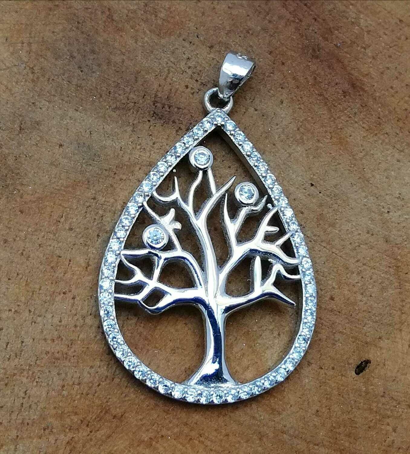 Lebensbaum Echt Silber mit Zirkonia Steinen in Tränenform