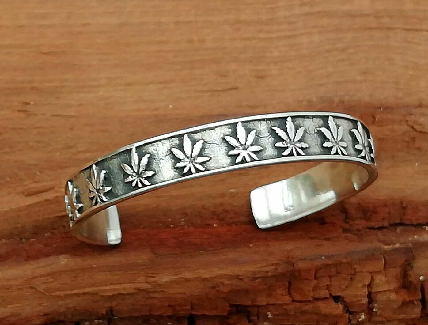 Marihuana , Ganja, Armspange, Echt Silber 925, massiv,