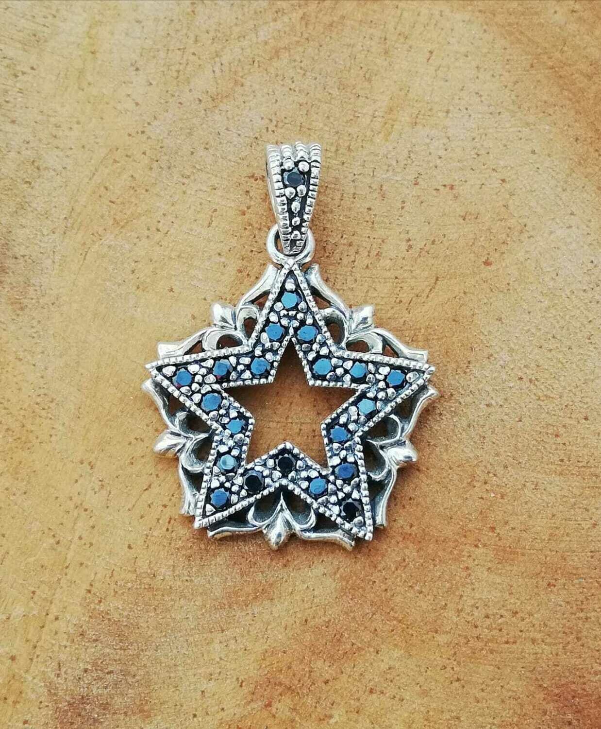 Pentagram Anhänger mit schwarzen Zirkonia (gefasst und nicht geklebt !), aus Echt Silber 925