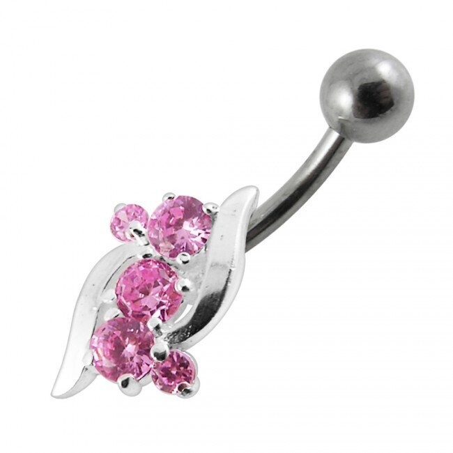 Pretty Lady in Pink, Bauchnabel Piercing , Echt Silber Anhänger, mit 316L Chirurgenstahl Stab in 8 mm